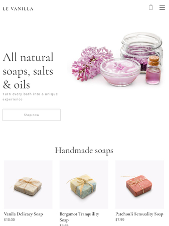 Delicate and dreamy, this template is ideal for selling handmade cosmetics! Add your products, set prices and start selling your one-of-a-kind beauty-care products online in just a few clicks.